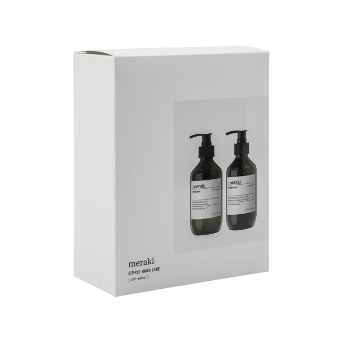 Meraki Anti-Odour gaveæsken er skabt til dig, der ønsker både pleje og praktisk funktion i én løsning. Sættet indeholder en håndsæbe og en håndlotion, hver i de velkendte Meraki-pumpeflasker med et indhold på 275 ml. Anti-Odour-formularen er udviklet til effektivt at neutralisere uønskede lugte og efterlader hænderne rene, bløde og med en diskret og behagelig duft. Lotionen fugter og plejer uden at virke fedtende, mens sæben skummer let og er skånsom mod huden i daglig brug. Den enkle og elegante indpakning gør gaveæsken oplagt som værtindegave, mandelgave eller som en lille forkælelse til en, du holder af. Et funktionelt og stilrent sæt til både køkken og badeværelse.