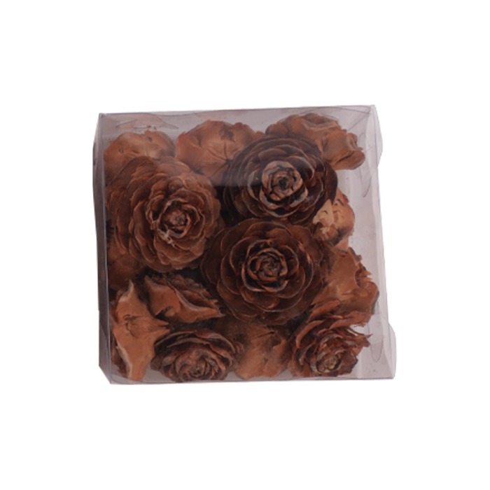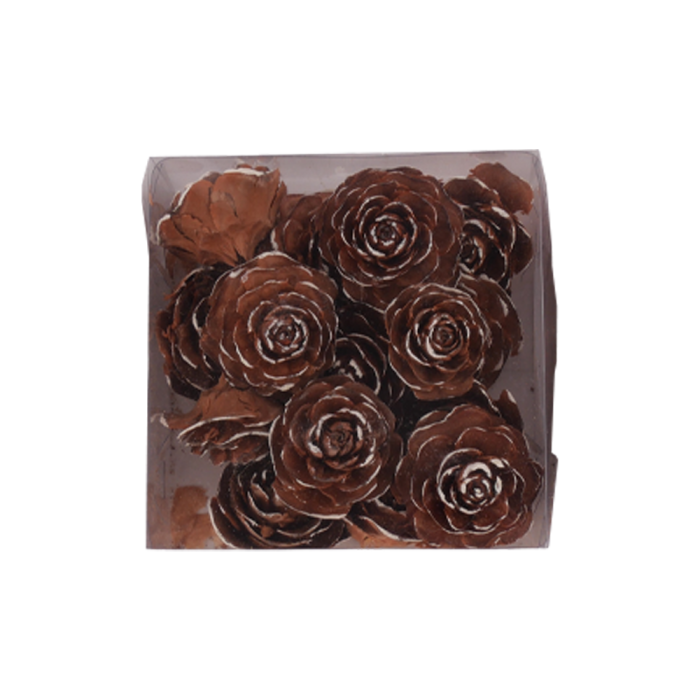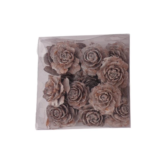 Kogleroser fra cedertræ med wire i tre forskellige nuancer. Meget dekorative med deres roselignende udseende. Vælg mellem med meget "frost", lidt "sne" eller naturlige brune.