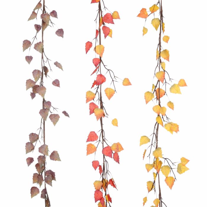 Guirlande birk. Smuk guirlande med knald på efterårsfarverne. Bladene er detaljerede og meget naturtro. Guirlanden findes i 3 varianter: Brun, orange og gul.