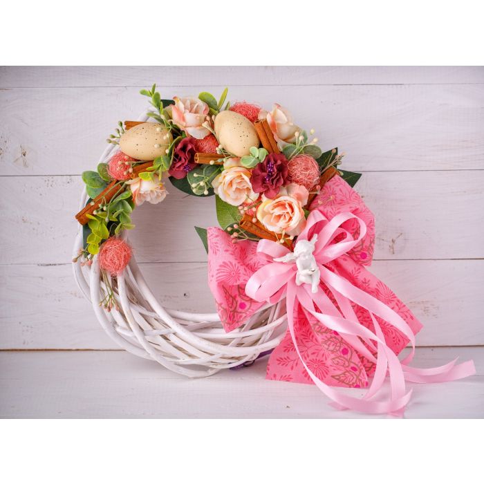 En stor pilekrans i hvid pil, der bringer lys og lethed ind i indretningen. Den flettede opbygning giver et harmonisk og naturligt udtryk, som gør kransen velegnet til både moderne og mere klassiske hjem.