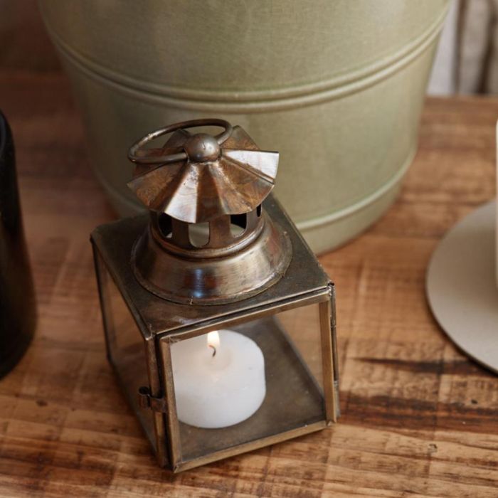 Mini lanterne fra Ib Laursen med hyggelig, bølget skorsten og glas i siderne. Charmerende som lyskilde i boligindretningen. Mini lanternerne kan med deres størrelse indgå som en del af borddækningen eller placeres på smalle hylder og små borde. Lanternen er til fyrfadslys.