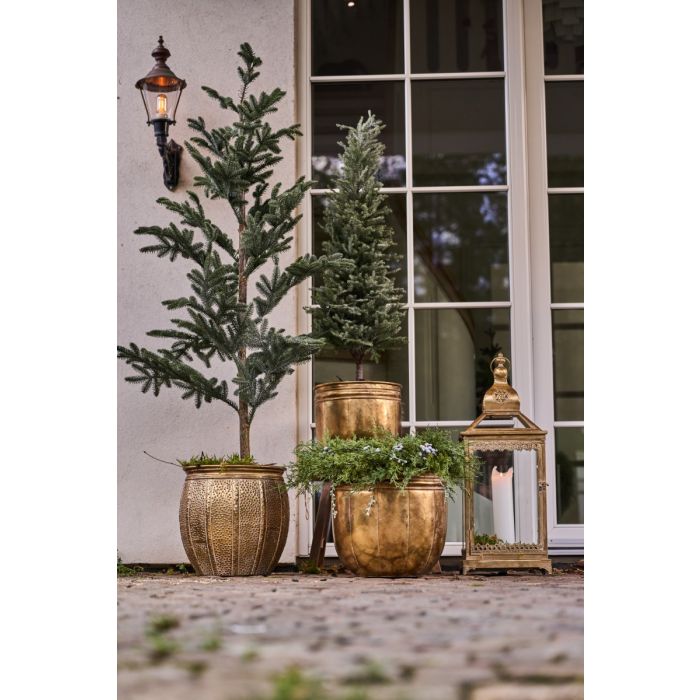 Eksklusivt lanternesæt fra Speedtsberg i guldfarvet metal med smukke detaljer og med glas i siderne. Lanternernes høje og elegante design gør dem til et iøjnefaldende blikfang i boligindretningen, uanset om de placeres på gulvet, i entréen eller i stuen. Brug lanternerne med bloklys, og lad dem fremhæve hyggen i hjemmet eller skabe et varmt velkomstindtryk ved hoveddøren.