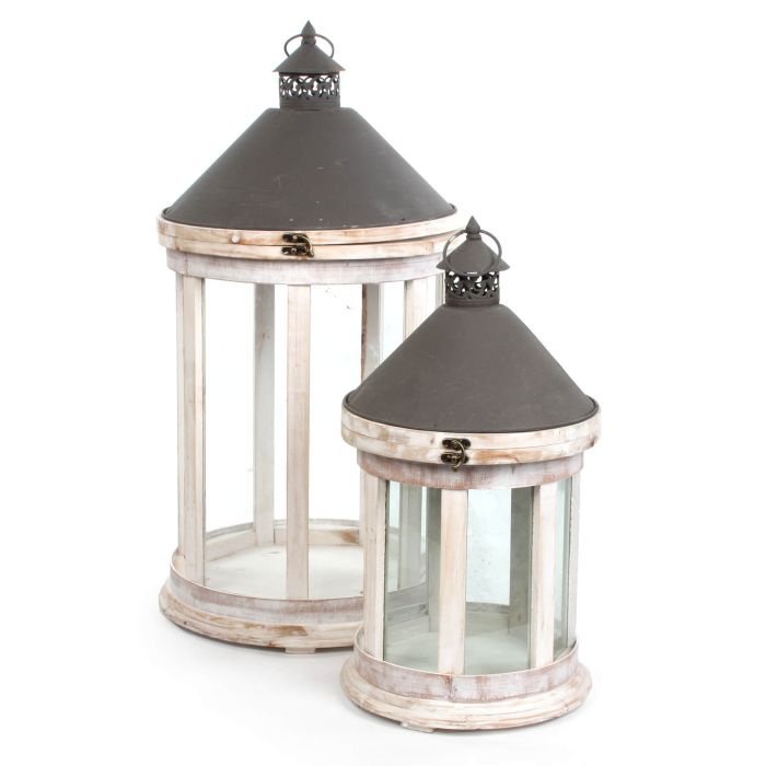 Dette smukke lanternesæt består af to runde lanterner i forskellige størrelser og har et charmerende, rustikt udtryk. Lanternerne er fremstillet i træ med glas i siderne, som giver et flot kig til lyset indeni, og afsluttes af en metaltop, der fuldender det klassiske lanterne-look. Den bløde, runde form gør dem nemme at placere både inde og ude, hvor de skaber en hyggelig og stemningsfuld belysning. Brug lanternerne sammen som et sæt eller hver for sig for at skabe variation i indretningen. Den største lanterne måler 72 cm i højden og fungerer som et dekorativt blikfang i entréen, på terrassen eller ved hoveddøren.