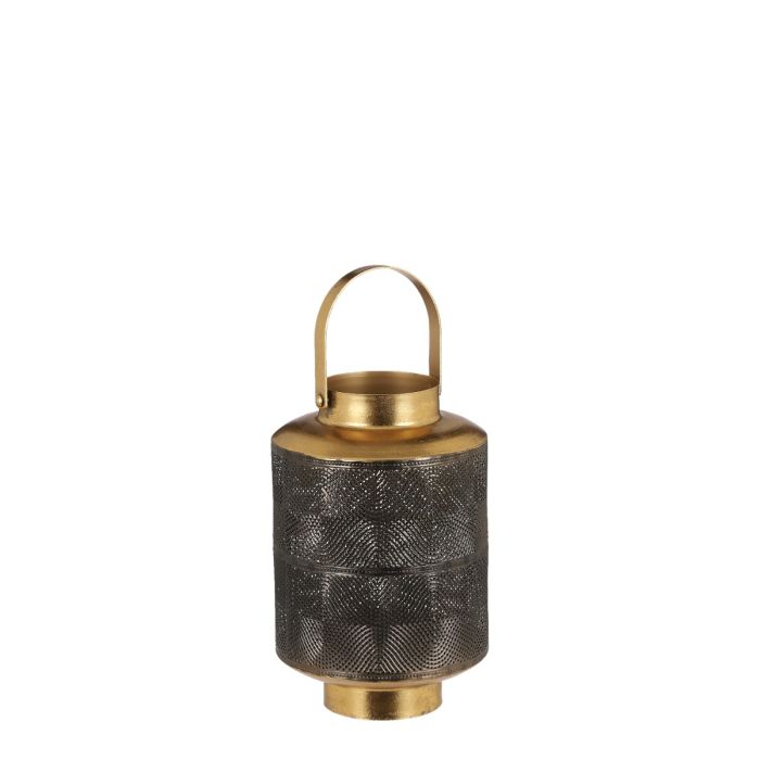 Lanterne i guldfarvet metal med sortlakerede sider med hulmønster i. Det tætte hulmønster giver en rigtig hyggelig belysning. Santi lanternen findes i 3 størrelser.