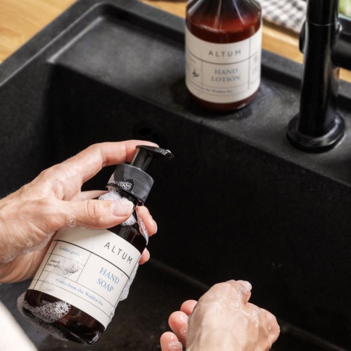 Håndsæbe ALTUM Golden Grass fra Ib Laursen er en mild, plejende, antibakteriel håndsæbe velegnet til alle hudtyper. Toner af citrusfrugter og orangeblomster kendertegner Golden Grass duften. I samme serie fås også duftpinde og duftlys.