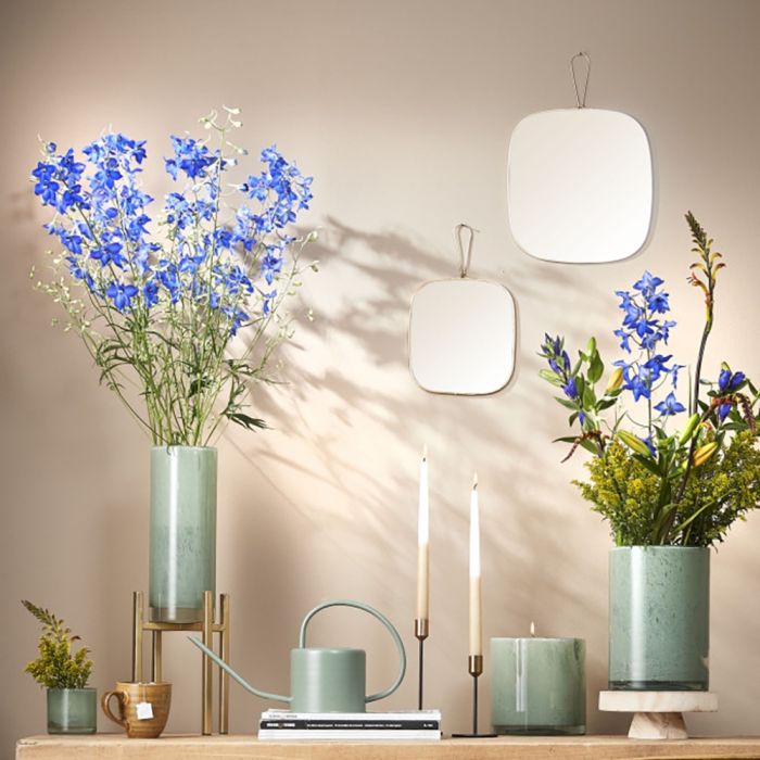 Dekorativt spejl med en elegant guldfarvet kant og en lille strop, der gør det nemt at hænge spejlet op på væggen. Spejlets bløde, afrundede form giver et let og harmonisk udtryk, som passer smukt ind i både moderne og mere klassiske indretninger. Det fungerer flot alene, men kommer særligt til sin ret, når det kombineres med andre spejle i forskellige størrelser og hænges forskudt for et levende og personligt look. Velegnet til entré, soveværelse eller som dekorativ detalje i stuen.