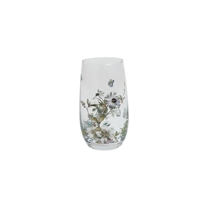 Drikkeglas med blomster 12 cm højt er i restordre og vil blive afsendt, så snart det er på lager igen.