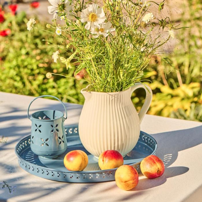 Kande med riller og i latte-nuancen fra Ib Laursens populære Mynte-serie. Kanden har et hav af anvendelsesmuligheder da den både tåler varme og kolde drikke. Den kan desuden gå i mikrobølgeovn, ovn, fryser og maskinopvaskes. Brug den rummelige kande til saftevand, blomstervase, sovsekande og meget mere.