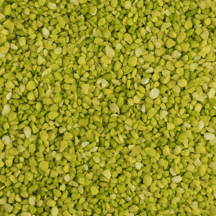 Limegrønne granulatsten giver dekorationer et friskt og energisk præg, hvor farven bidrager med klarhed og liv. Den fine granulatstørrelse gør materialet velegnet til brug i cylinderglas, gennemsigtige vaser og glasbowler, hvor stenene lægger sig tæt og skaber en ensartet overflade. I lysbakker kan granulatstenene bruges til at danne et lyst og stabilt underlag, som fremhæver både lys og øvrige elementer. De egner sig også til dekorative arrangementer, hvor den limegrønne tone bruges til at skabe opdeling og visuel bevægelse. I julelandskaber tilfører granulatstenene et frisk farveindslag, der giver variation uden at virke dominerende. Den lette form gør dem nemme at arbejde med, både når der fokuseres på præcise detaljer og større flader.