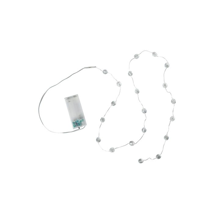 Hyggelig lille lyskæde til dekoration med 20 lysende runde facetkugler med varmhvide LED-pærer i. Pynt efterårets- eller julens kranse, guirlander, vindueskarmen eller brug lyskæden som en del af bordpynten. Den er beregnet til indendørs brug. Kan kun anvendes ude, hvis der er overdækket.