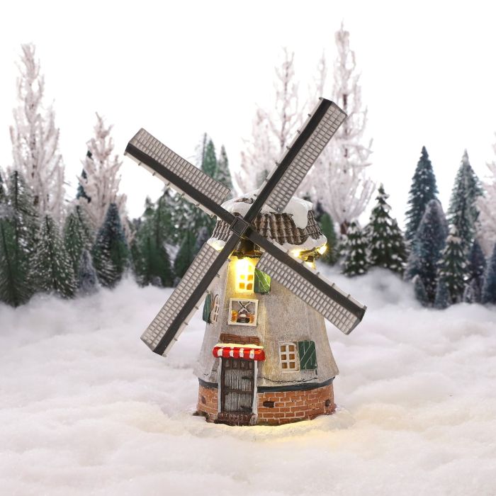 Hollandsk mølle fra Luville "Molendam" serien er med lys under taget samt vinger, som kan dreje rundt. Giver en hyggelig, landlig atmosfære i julelandskabet.