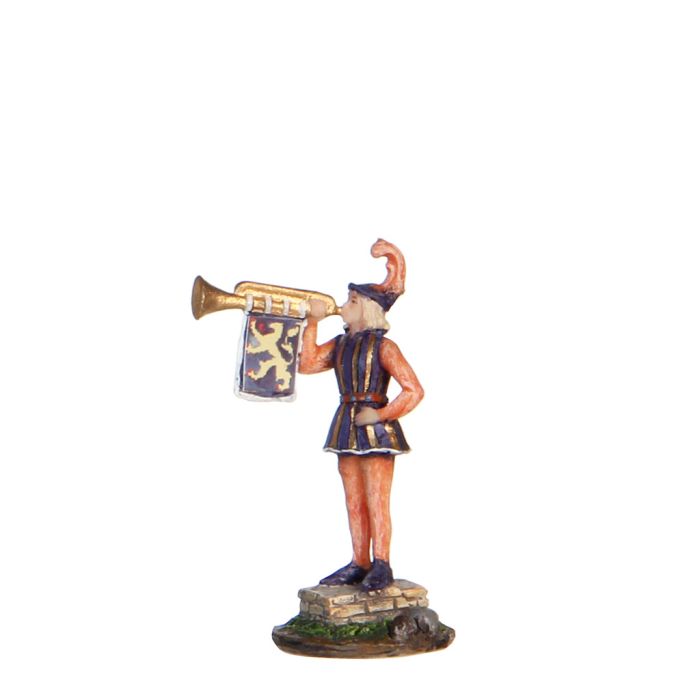 Vagt med trompet i pakke med 2 stk. Vagten er i kongelig uniform og med løvevåbenskjoldet hængende ned fra trompeten.
