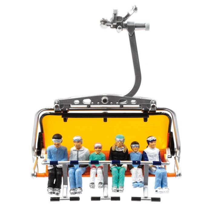 Siddende figurer med skistøvler og skibriller lige til at sætte i skiliftene fra Jägerndorfer. Figurerne sidder sammen på række og kan ikke derfor ikke sættes enkeltvis. Udvid dit julelandskab med en skilift med bevægelse og skab liv og atmosfære i det.