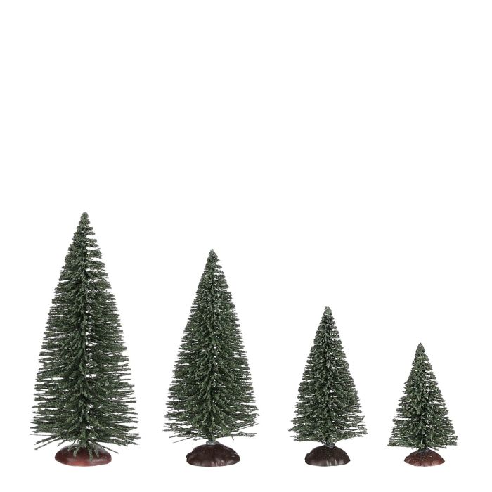 Mørkegrønne træer i fire forskellige størrelser. Der er 21 stk. i en pakke. Find flere buske og træer uden sne her.