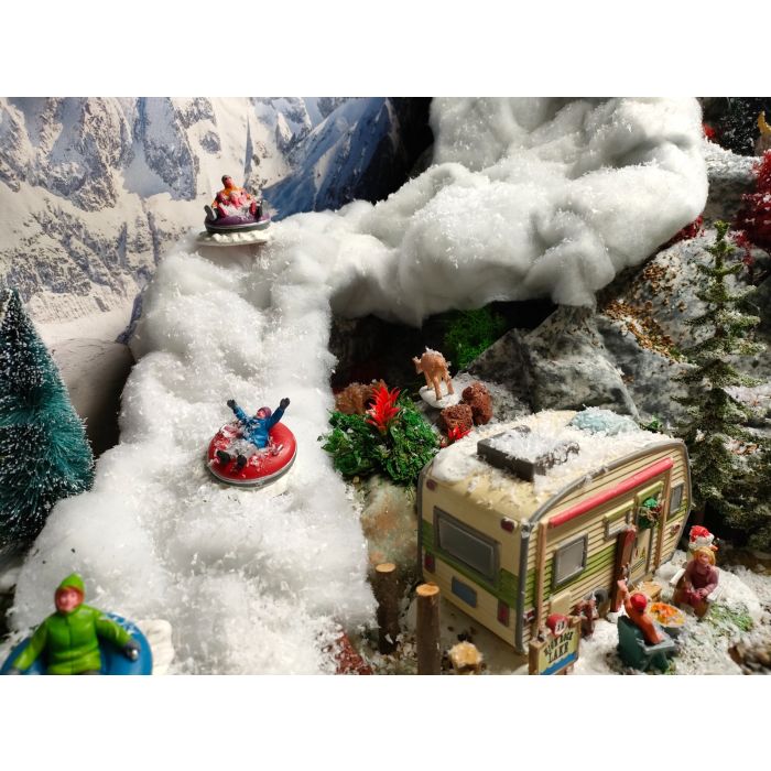 Sneunderlag foldbart. Dette er det helt nye underlag fra MyVillage, som man selv kan folde og krølle så man får det naturlige udtryk i sit julelandskab. Mulighederne er uendelige. Det er vigtigt at man benytter arbejdshandsker, når man folder og modellere dette underlag. Sneunderlag foldbart er vandtæt, miljøvenligt, genanvendeligt og kan genbruges år efter år. Underlaget er nemt at skære, lime og folde.