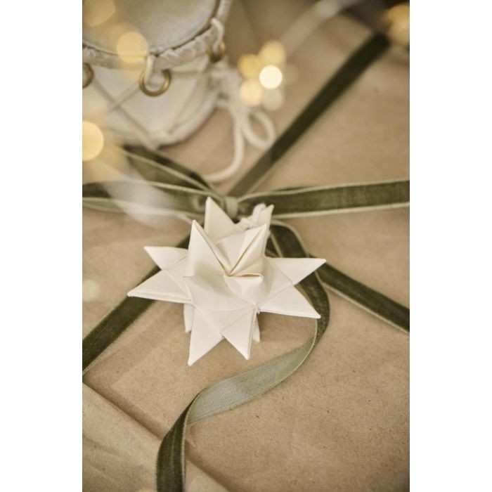 Klassisk, flettet julestjerne i hvidt papir. Stjernen har snor til ophængning og kan hænge smukt i vinduet , på juletræets grene eller den kan bruges som pakkepynt. Julestjernen er en del af Ib Laursens populære Stillenat-serie.