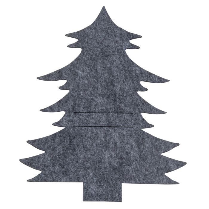 Denne bestikholder i form af et grantræ er en enkel og stemningsskabende detalje til julebordet. Udskåret i gråt filt giver den et varmt og nordisk udtryk, som passer smukt ind i både moderne og traditionelle borddækninger. Den lille åbning på midten holder bestikket elegant på plads og gør det nemt at skabe en ensartet og dekorativ opstilling ved hver kuvert.