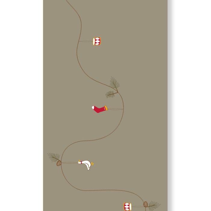 Papirservietter til julebordet fra Speedtsbergs julekollektion. Servietterne er dekoreret med julepynt på en stiplet guirlande. De passer godt til både julemiddage, adventshygge og årets festlige sammenkomster. Brug dem sammen med matchende julepynt for at fuldende julelooket. Servietterne fås i flere designs.