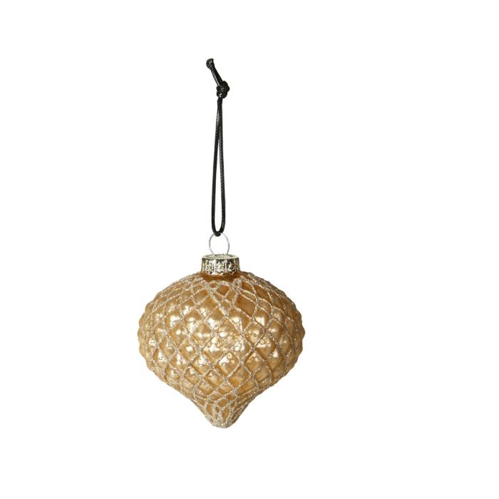 Julekugle løgformet i guld og champagne