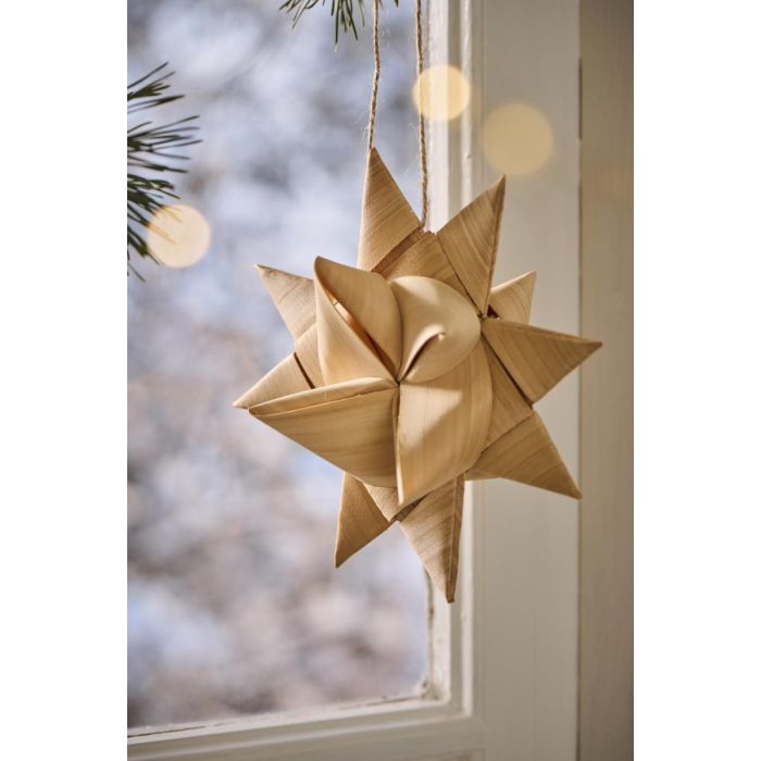 Julestemningen er i hus med denne nostalgiske stjerne i flettet spån fra Ib Laursen. Inspireret af klassisk dansk juletradition er den en smuk og naturlig pynt, der passer godt til den nordiske jul. Stjernen er fremstillet i naturmateriale og har et håndlavet udtryk, som gør den ideel både som pynt på juletræet og som dekoration i vindueskarmen, på grene i en vase eller liggende på julebordet.