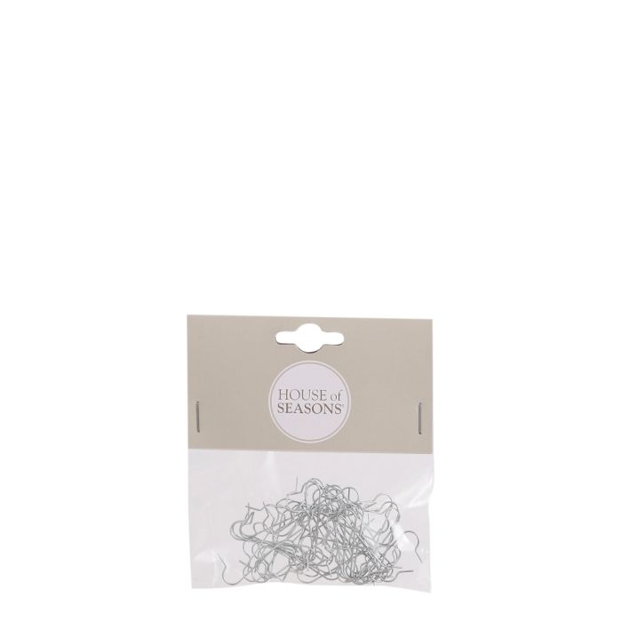 Kroge til at hænge fx juletræspynten på juletræet. Der er 50 sølvfarvede kroge i en pose.