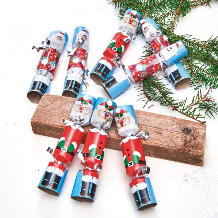 Knallerter til juletræet eller som bordpynt. Knallerterne er med julemand og isbjørn som motiv. Der er mini-legetøj og kongekroner af silkepapir indeni.