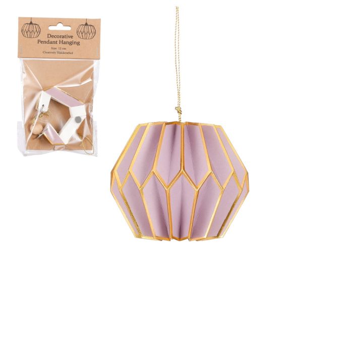 Dekorativ, håndlavet bikube i lilla, foldet papir med guldfarvede kanter. Smuk på grene, juletræer og i vinduer. I serien med håndlavede papirophæng, er der i flere former og farver.
