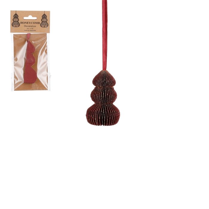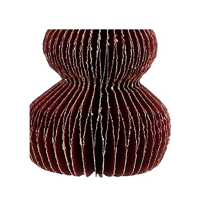 Dekorativt, håndlavet juletræ med 3 "etager" i bløde former. Juletræet er i mørkerødt, foldet papir med guldfarvede kanter. Smukt på grene og i vinduer. I serien med håndlavede papirophæng, er der flere former og farver.
