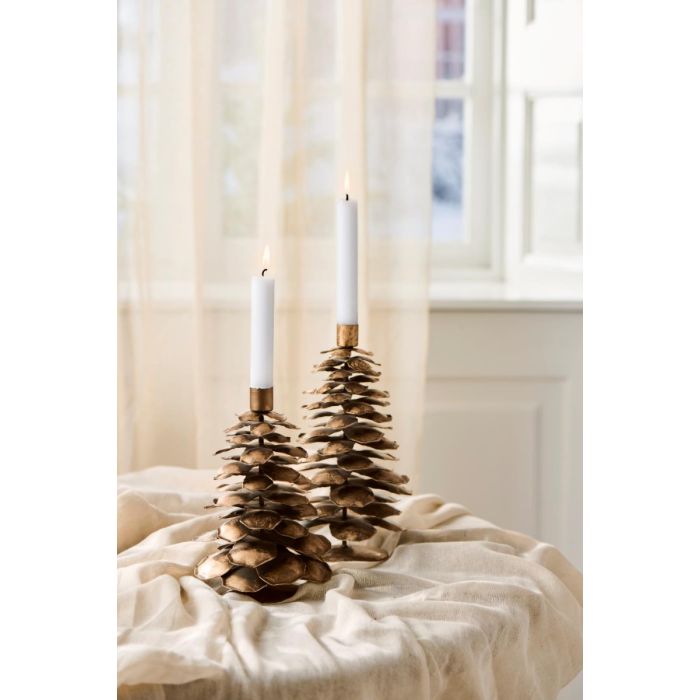 Flot og dekorativ koglelysestage fra Ib Laursen. Lysestagen er udført i kobberfarvet metal og har et rustikt udtryk, der minder om naturens egne kogler. Den er designet til kronelys og passer godt i vindueskarmen, på spisebordet eller som en del af en smuk juledekoration. Kombinér den med gran, kogler og andre naturlige elementer for at skabe et klassisk og hyggeligt udtryk i efterår- og vintermånederne. Fås i flere størrelser og til kertelys.