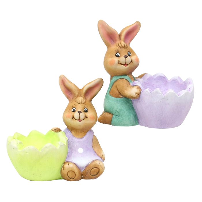 De kære påskeharer med hver deres æggeskal/æggebæger bringer både smil og forårsstemning ind i påskepynten. Haren sidder klar med et dekorativt æggebæger, der også fungerer som en lille skål og gør figuren både pyntende og anvendelig.