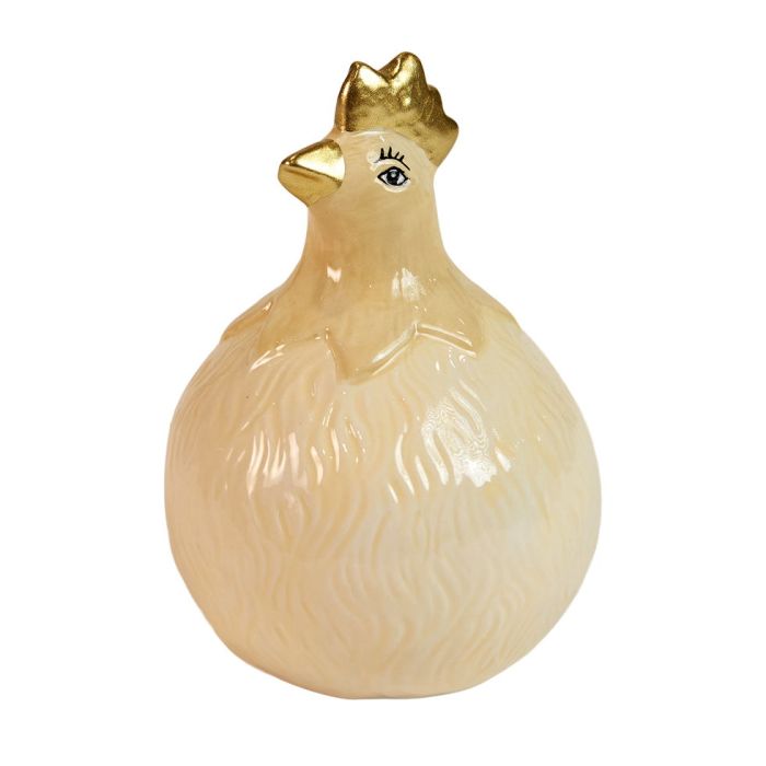 Denne påskehøne fra Speedtsberg er holdt i lysegule nuancer og har detaljer med guldfarvet kam og næb, som giver figuren et let og festligt udtryk. Farverne er rolige og forårsvenlige og passer godt ind i både klassiske og mere enkle påskeopstillinger.