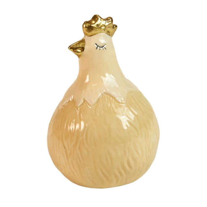 Denne høne fra Speedtsberg er udført i lysegule nuancer og har fine detaljer med guldfarvet næb og kam, som giver figuren et let og festligt udtryk. De bløde farver passer naturligt ind i forårets og påskens dekorationer.