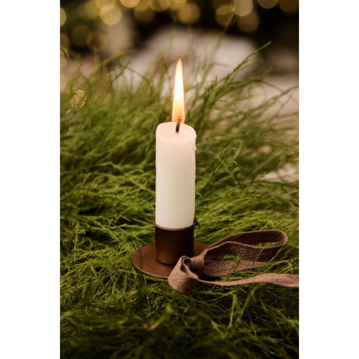 Elegant lysholder med langt spyd til kronelys fra Ib Laursen. Lysholderen er lavet i kobberfarvet metal og har et rustikt udtryk, der passer godt i efteråret- og julens dekorationer. Brug den alene eller kombiner flere for at skabe en smuk og klassisk dekoration, der spreder varme og hygge i hjemmet.