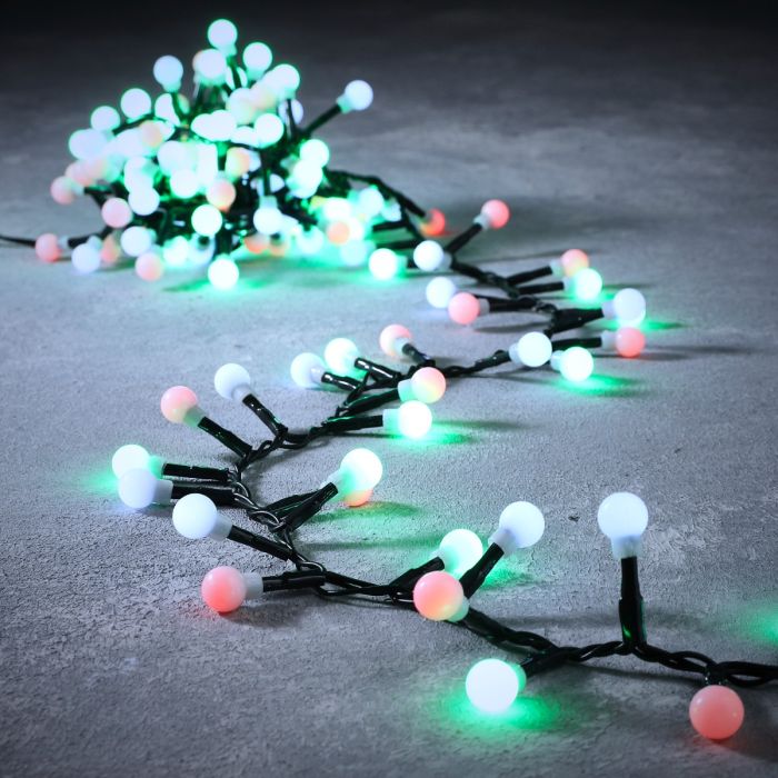 Lyskæde med flerfarvede bærlignende pærer. Der er 550 LED-lys på en 1400 cm lang, mørkegrøn ledning. Pærerne sidder med 2 centimeters mellemrum. Lyskæden kan indstilles med 8 forskellige lys funktioner og med timer-funktion (6 timer tændt/18 timer slukket). Den kan sættes op såvel inde som ude.