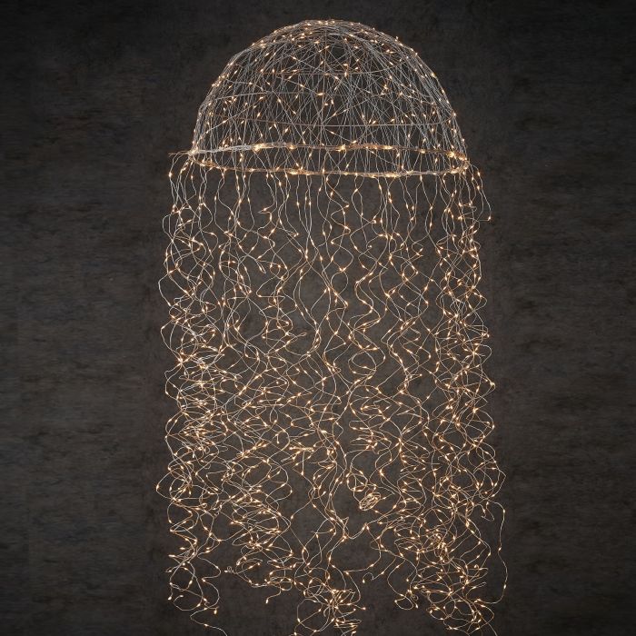 Skab et unikt og hyggeligt rum med denne lysekrone formet som en lysende vandmand fra Luca Lighting. Hele 720 små LED-pærer lyser op i et varmt, hvidt lys, når den tændes. Belysningen er stænksikker og kan også tåle at hænge ude fx i engangspartiet eller i en udestue. Der er 3 m ledning på produktet.
