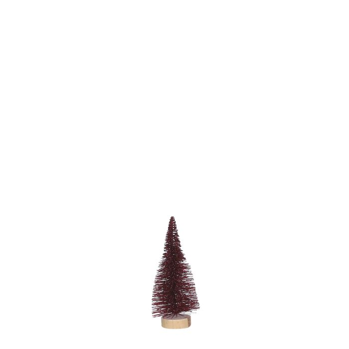 Dekorationstræ i rød farve med glimmer i lille størrelse. Dekorationstræet lyser op i både juledekorationer, på kranse eller i vindueskarmen. Det findes i 3 størrelser.