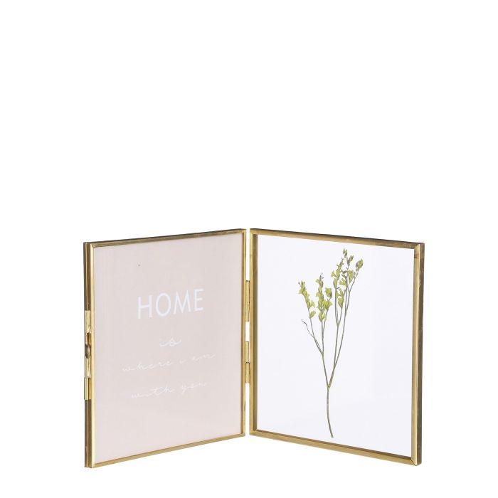 Gloria golden frame for 2 photographs or a photo and associated text. Perfect to display your memorable moments. The frame measures 15.5 cm in height and 32 cm in width. Made of metal.