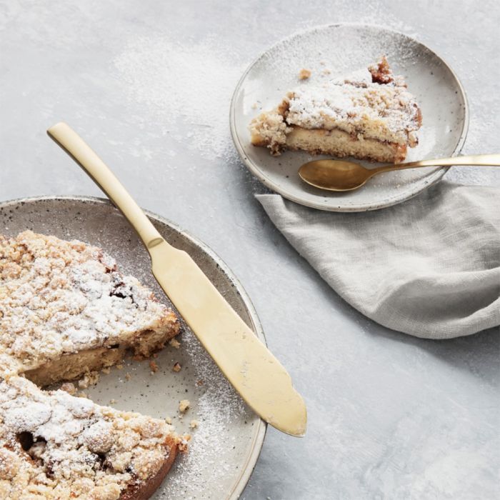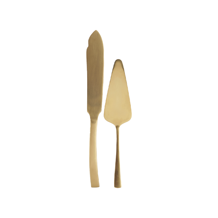 Dette elegante kagesæt fra House Doctor er fremstillet i guldfarvet rustfrit stål og tilfører kagebordet et både moderne og festligt udtryk. Sættet består af en kagekniv og en kagespade, som tilsammen gør det let at skære og servere alt fra lagkager og tærter til små desserter. Det gyldne metal giver en varm glød og løfter borddækningen ved fødselsdage, højtider og hyggelige kaffestunder. Kagesættet ligger godt i hånden og er robust i brug, samtidig med at det fremstår som en dekorativ detalje, når det ikke er i brug. Et stilrent valg til både hverdag og festlige lejligheder.