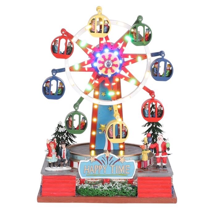 The Happy time Ferris wheel with small, coloured cabins can rotate. There are numerous lights on the ride, so it is noticeable from afar and as a little surprise, Santa Claus is ready to welcome the visitors.
