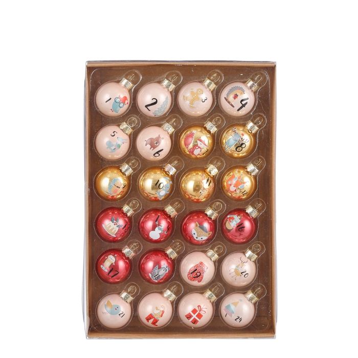 Small, colourful Christmas balls with a wintry motif numbered from 1 to 24. Use the Advent ornaments in December when you prepare the little surprises.