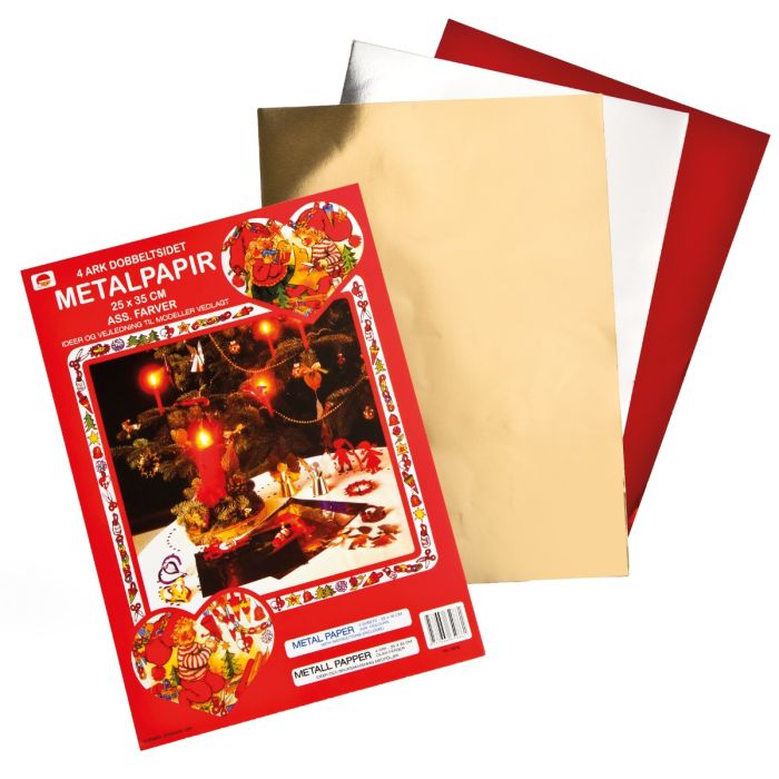 4 ark metalpapir i 35 cm x 25 cm og idéer og vejledning med i pakken.