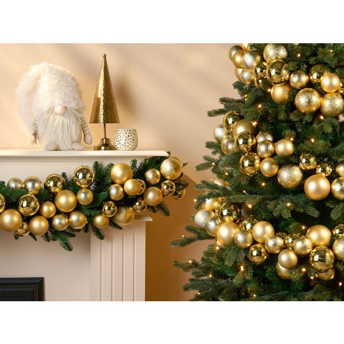 Guirlande med 68 guldfarvede julekugler