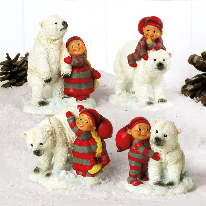 Baby elf with polar bear. It measures 6 cm. Available in 4 variants.