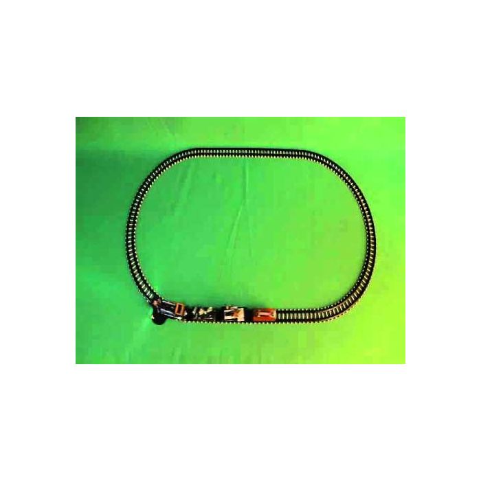 R.I.P. Railroad consists of 4 train cars, including a locomotive with headlights, realistic train sound with spooky script, and a mummy and a witch on one of the cars that pump up and down. It comes with 4 straight track pieces and 8 curved track pieces. It is made of plastic and measures: L: 116.10 cm x H: 12.50 cm x D: 65.30 cm. The diameter of the circular track is 56.4 cm.