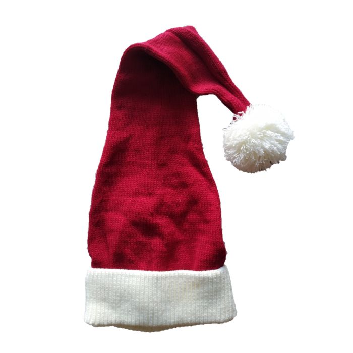 Soft yarn Santa hat that is finely knitted. Good quality Santa hat. The Santa hat is very comfortable to wear and adapts to any head size. The Santa hat is red with a white brim and a soft round white tassel. The Santa hat can be used on all cold days, warming the ears well. It is a must-have Santa hat that can be used year after year. The Santa hat measures 67 cm in length from the top of the tassel to the bottom of the brim.