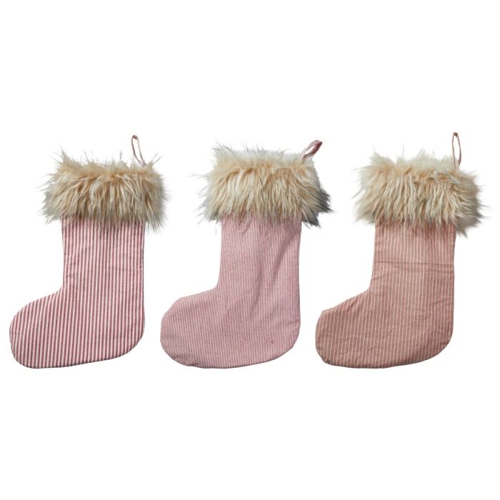 Stribet julesok med kunstig pelskant - Tykke striber is backordered and will ship as soon as it is back in stock.