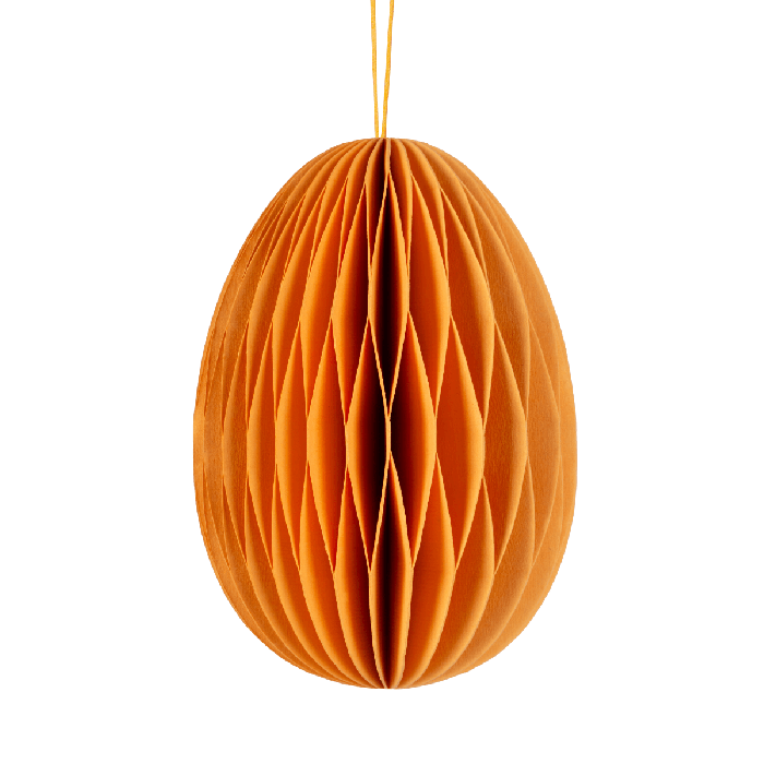 Påskeæg i ferskenfarvet nuance. Det er fremstillet i genbrugspapir. Påskeægget foldes ud og lukkes med lille magnet. Påskeægget kan fx hænges op i vinduet eller på store grene.