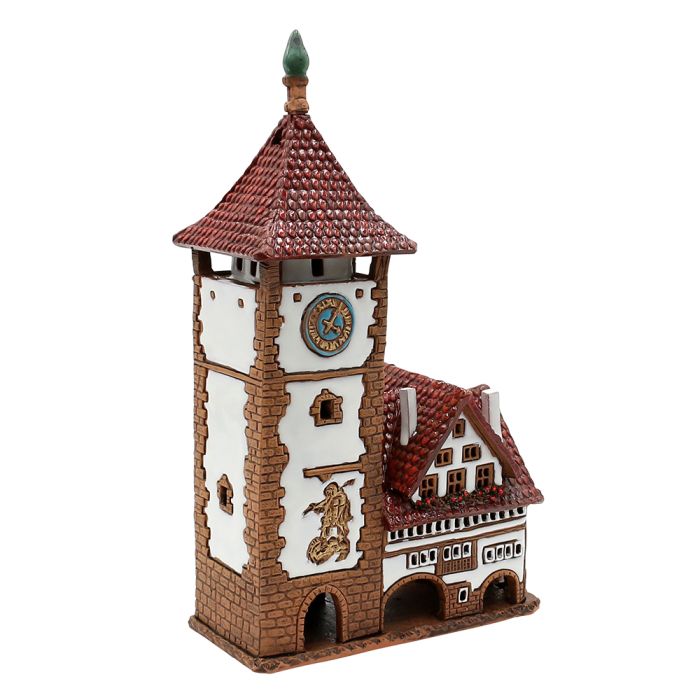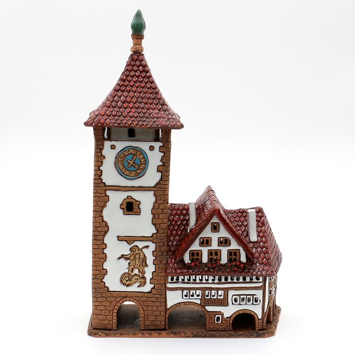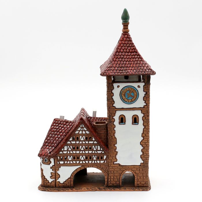 The Freiburg medieval city gate made of ceramic. It is handmade. All details and colors are similar to the real city gate of Freiburg. You can either put scented oil or tealight candles inside the city gate. If you put in a tealight candle, it gives a very authentic and cozy look. The Freiburg medieval city gate measures L: 16 cm x W: 8 cm x H: 23 cm.