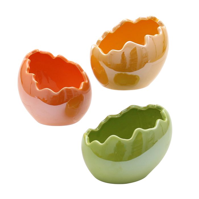 Æggeskallen er fremstillet i porcelæn og fås i farverne gul, grøn og orange. Med en højde på ca. 7 cm og en diameter på ca. 6,5 cm har den en fin størrelse, der gør den dekorativ både alene og som en del af en større opstilling. Den kan placeres på bordet, i en reol eller på en hylde, hvor den tilfører farve og forårsstemning.