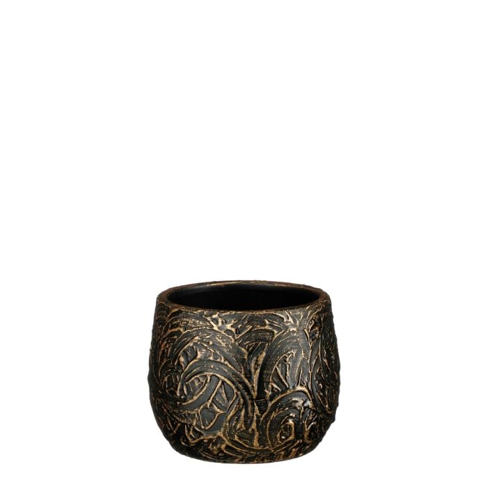 Arthur urtepotte med guldfarvet, rustikt mønster på mørk malet terrakotta. Meget flot fx med grønne planter i.